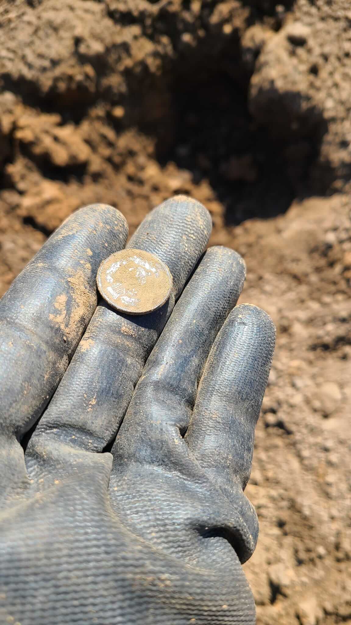 Lunchtime hunt at an old demolished house site with The Legend (M1, 4khz, all metal, LG24 coil) 4-6 inches deep. Rolled the dirt over getting ready to build houses on the site. Been there before found silver quarter. My oldest coin to date. OMG STOKED!
